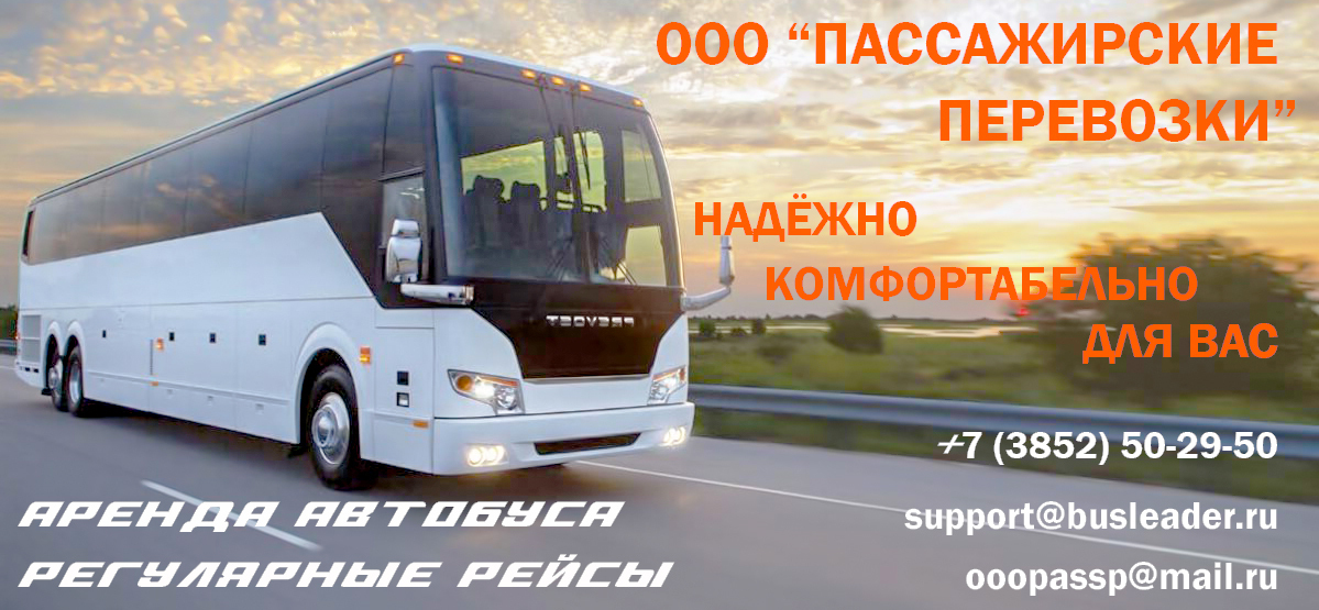 ПОЛУЧИТЬ ОТВЕТ НА ЛЮБОЙ ИНТЕРЕСУЮЩИЙ ВАС ВОПРОС ПО АРЕНДЕ АВТОБУСА МОЖНО ПОЗВОНИВ ПО ТЕЛЕФОНУ +7 (3852) 50-29-50 ОТПРАВИВ ПИСЬМО НА АДРЕС ЭЛЕКТРОННОЙ ПОЧТЫ OOOPASSP@MAIL.RU ИЛИ ЗАПОЛНИВ ЭЛЕКТРОННУЮ ФОРМУ