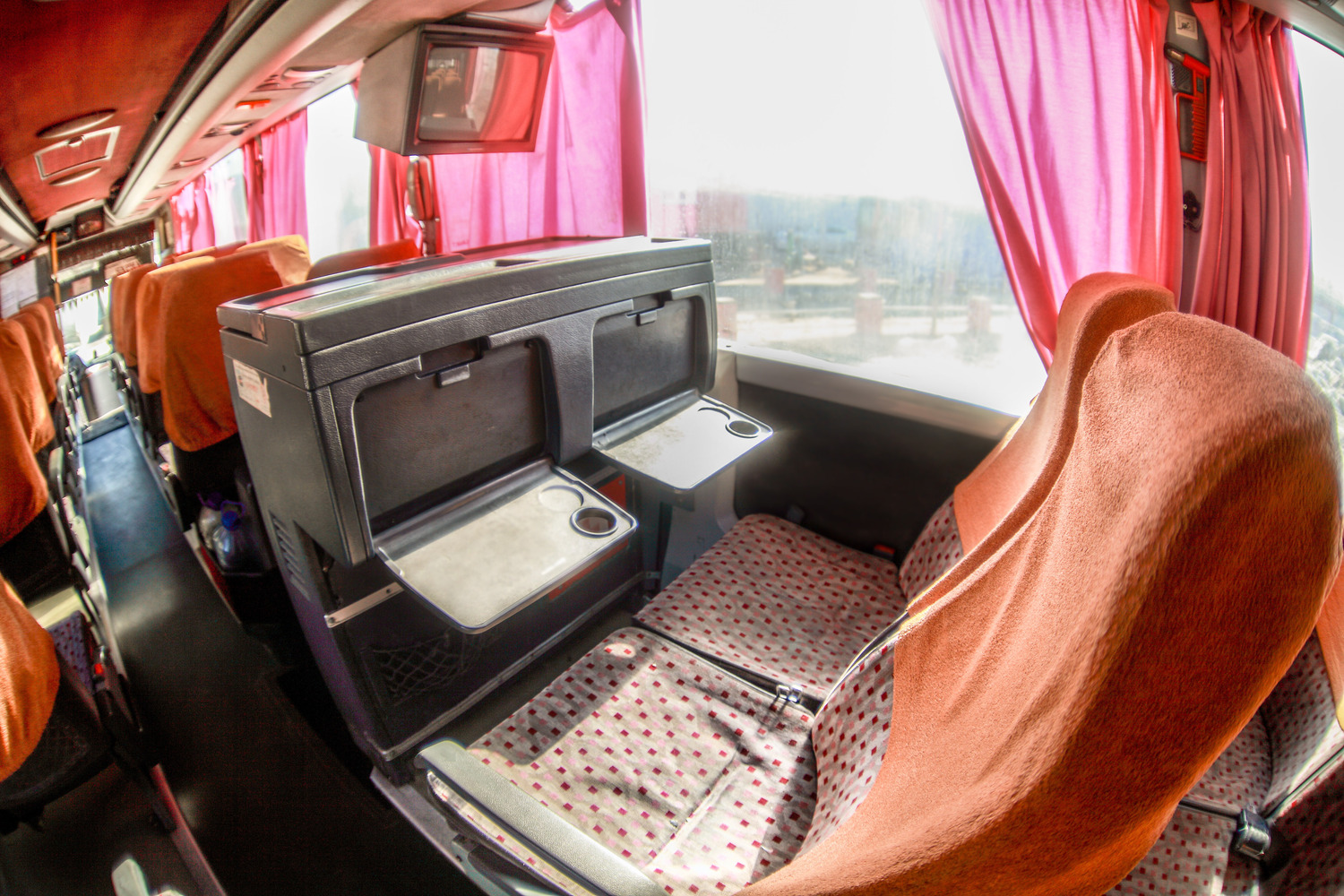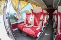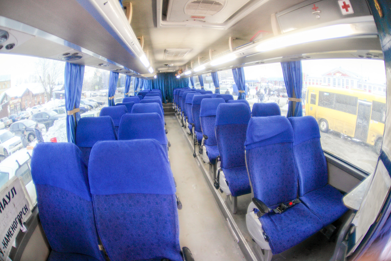 Комфортабельные мягкие сидения, подножки, откидные столики. По уровню комфорта, качества исполнения и надежности автобус сравним с лучшими европейскими аналогами. Оборудован: климатической системой, аудио-видео системой. Багажный отсек - 3,5 м3.