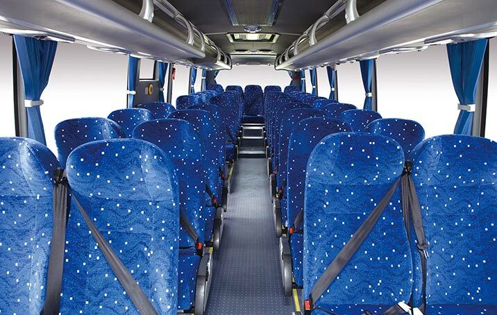 Комфортабельные регулируемые мягкие сидения, панорамное двойное остекление. Оборудован: климатической системой, автономным стояночным отопителем, аудио-видео системой (включая микрофон). Багажный отсек - 6 м3.